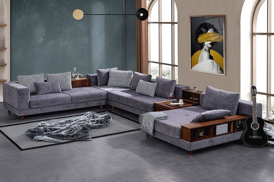 Antrasit, gri ya da kömür tonlarında, koyu renk duvarlarla çok şık duran köşe takımları.