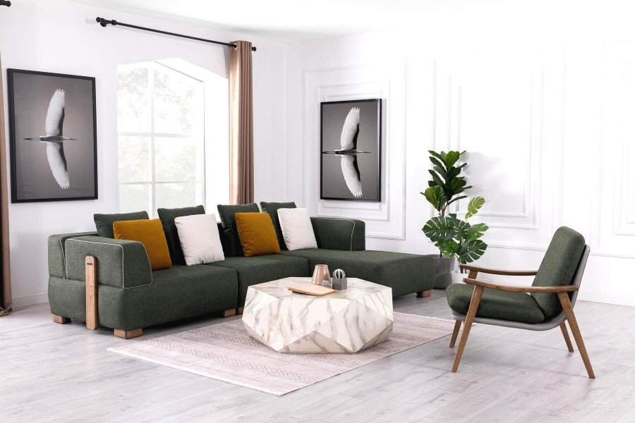 Özellikle küçük salonlar için L koltukların kısa kol modüllü veya sırt arkalıklı örnekleri.
