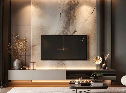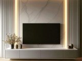 Oturma odalarınızı estetik ve fonksiyonellikle buluşturan bu TV ünitesi & duvar paneli tasarımı, modern dekorasyon anlayışını yansıtır. Panelli arka duvar sayesinde TV yerleşimi odak noktanız olurken, dolap ve raf sistemleri cihazlarınızın ve dekoratif objelerinizin düzenli şekilde sergilenmesini sağlar. Kablo gizleme sistemi sayesinde görünüm sade ve temiz kalır.